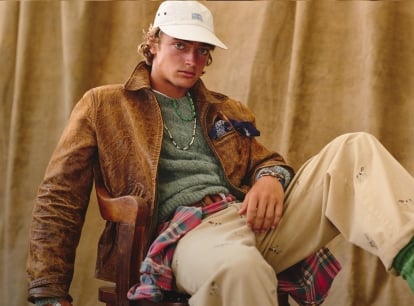 Il nostro classico cappellino è riproposto con un tweed di lana prodotto in collaborazione con la manifattura irlandese Magee 1866, partner di Ralph Lauren da oltre 50 anni. Il tessuto a spina di pesce tinto in fibra presenta un design a quadri con motivo pied-de-poule.